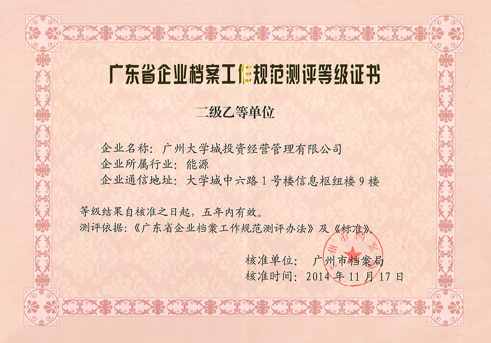企业档案工作二级乙等单位