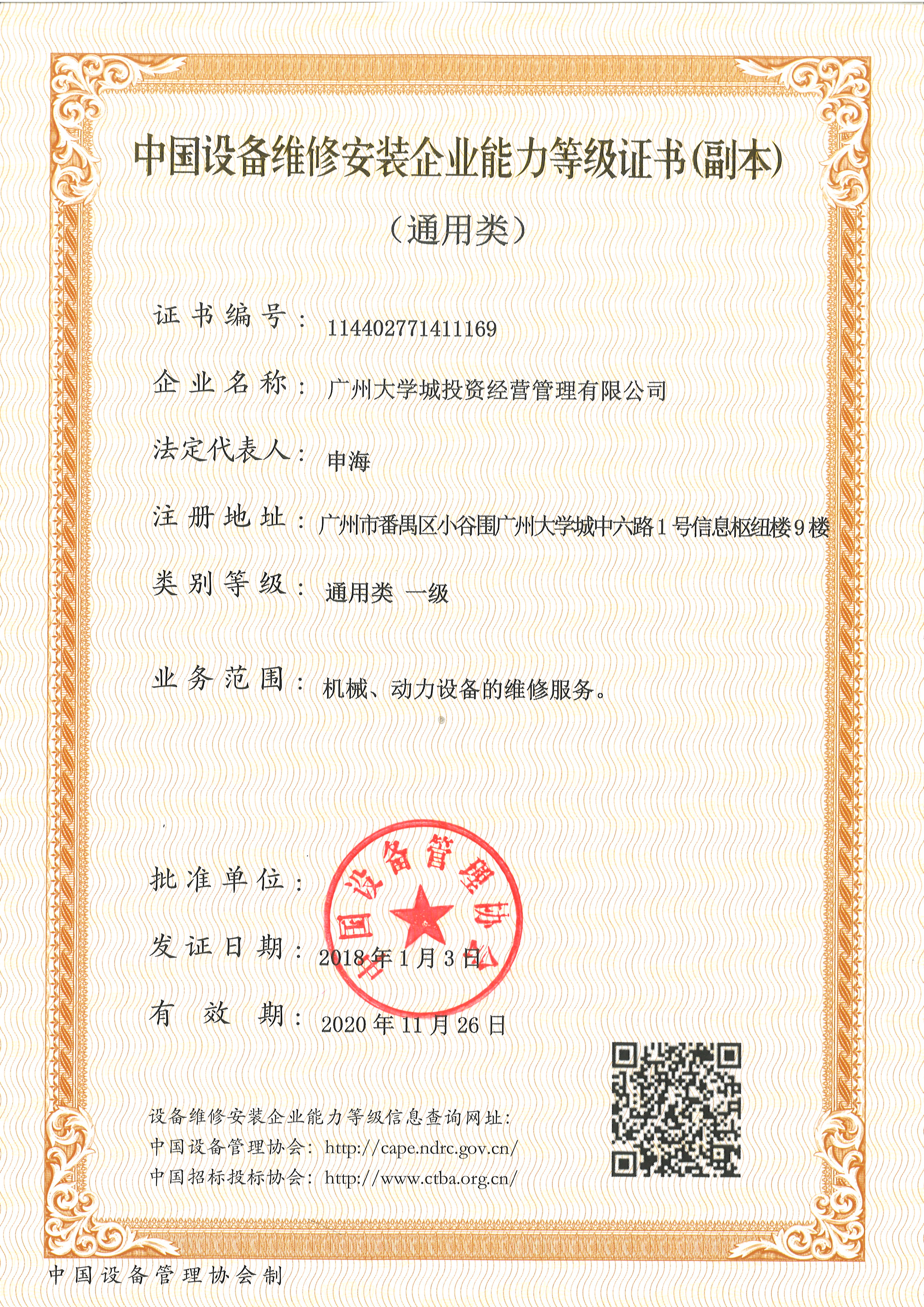 能源公司通用类一级维修资质