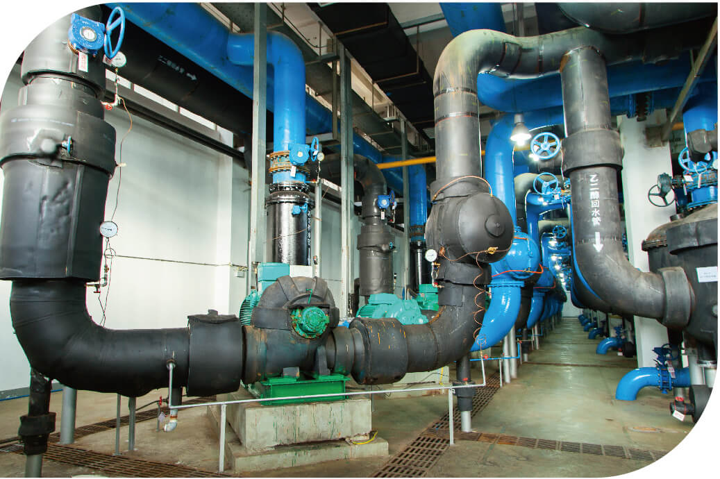 大学城区域供冷系统是目前国内在运营的最大区域供冷项目,总投资8.5亿元,供冷建筑面积约430万平方米,设计装机容量约37.3万千瓦,主供冷管网约120公里,服务大学城高校、国家超级计算广州中心等单位约25万人。系统采用电制冷和冰蓄冷技术,拥有26台大型双工况离心机组,夜间利用谷电优势制冰蓄冷,白天通过冰盘管进行融冰释冷,电力移峰能力可达4万千瓦,近十年来移峰电量达6亿度,节约1.2亿度电,相当于节约近4万吨标煤,减少近11万吨二氧化碳排放,等于4300亩森林的碳汇能力,积极落实“双碳”行动。
