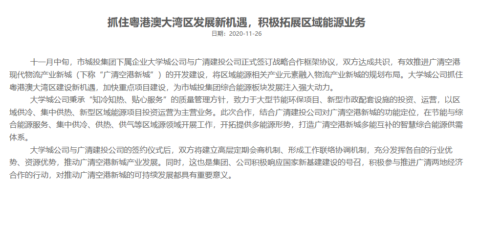 抓住粤港澳大湾区发展新机遇, 积极拓展区域能源业务